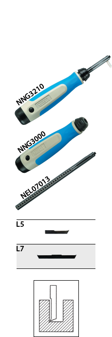 1 manche NogaGrip-3, 1 porte-lame L et 1 lame L5.