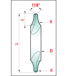The magafor centre drill with radius thanks to its special profile, is more robust than the 60° centre drill :