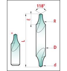 The magafor centre drill with radius thanks to its special profile, is more robust than the 60° centre drill :